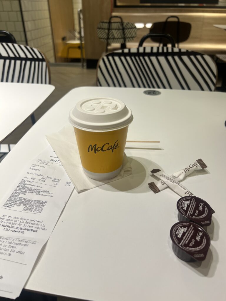 わざわざ有人レジに向かい、1.5ユーロのコーヒーを5ユーロ札で支払いました。