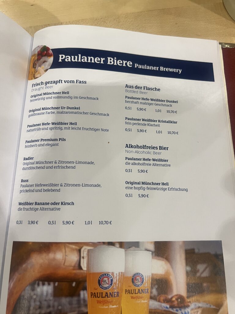 ドイツでは水は有料ですので、まずはドリンクをオーダーします。