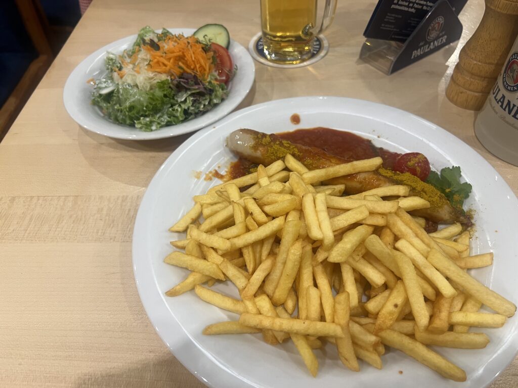 料理はカリーブルストを注文しました。