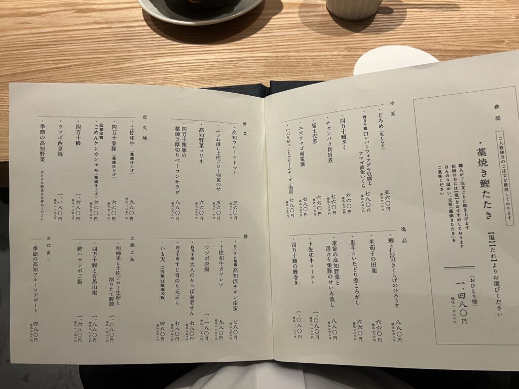 鰹以外にも、土佐高知の名産郷土料理が幅広く楽しめて、メニュー表を見るだけでも面白いです。