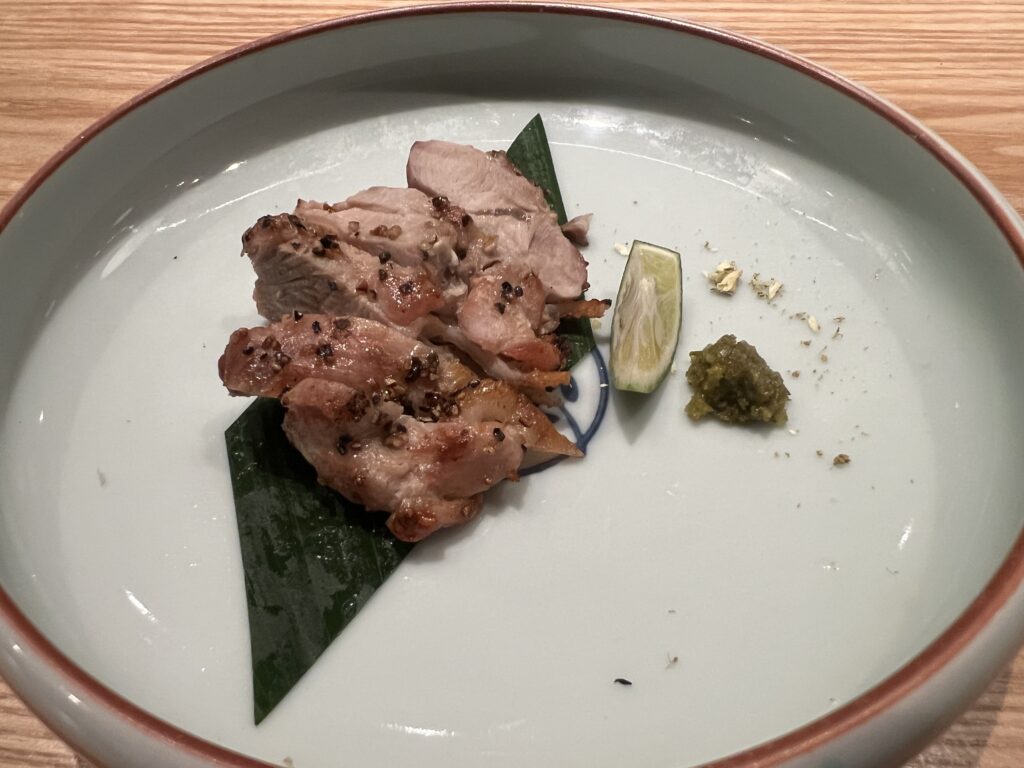 やや遅れて提供されたのが、ごめんけんか軍鶏の燻香焼きです。