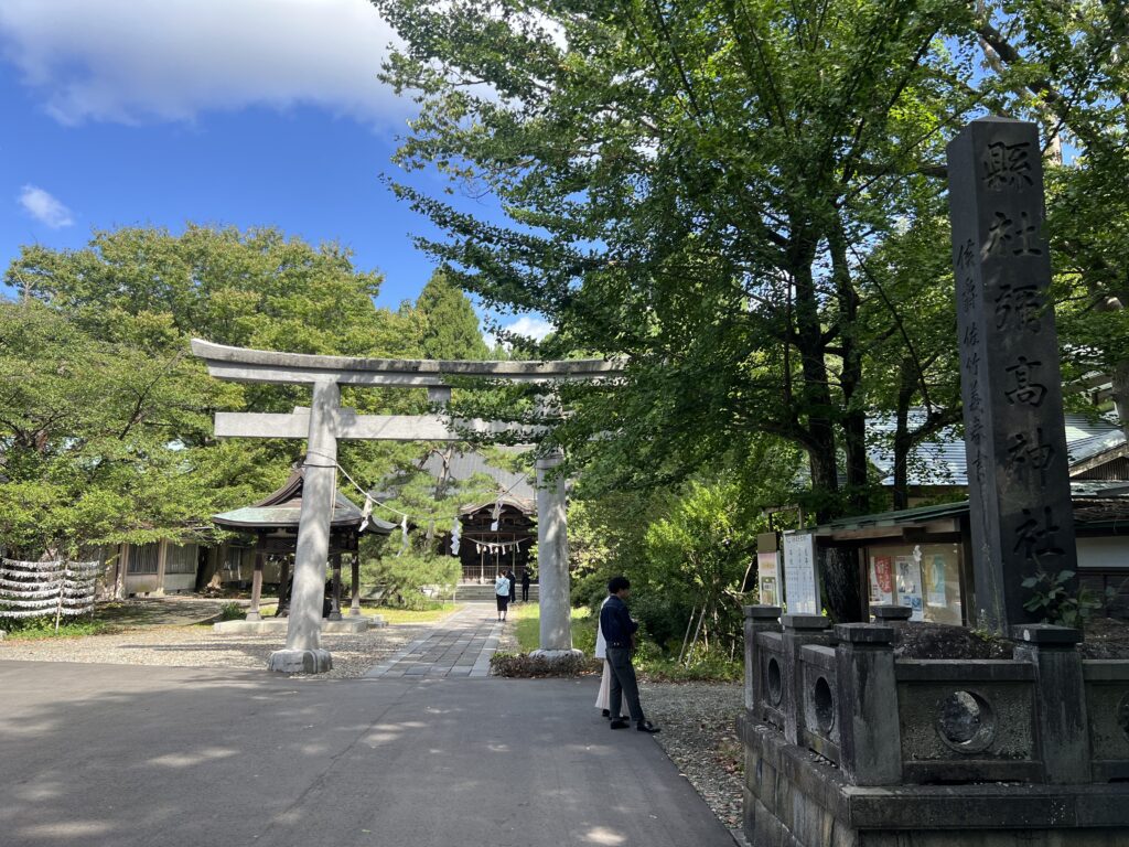 櫓から東方向にしばらく進むと、彌高神社があります。