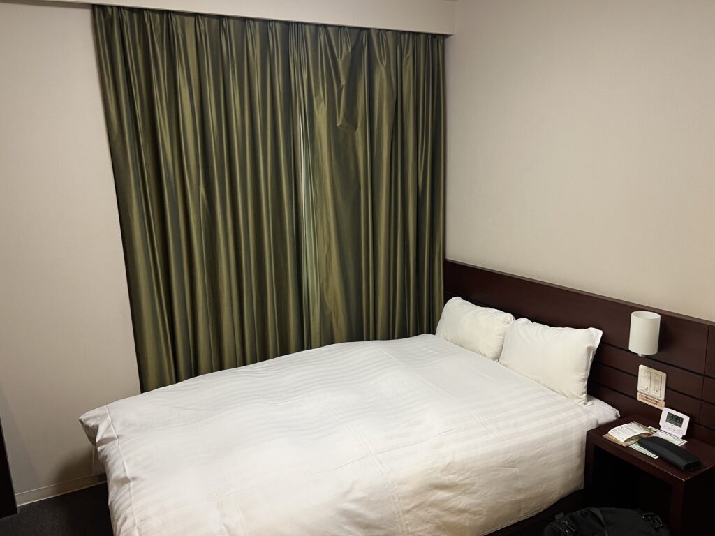 シンプルなビジネスホテルのようですが、ベッドがフカフカかつデカくて最高です。