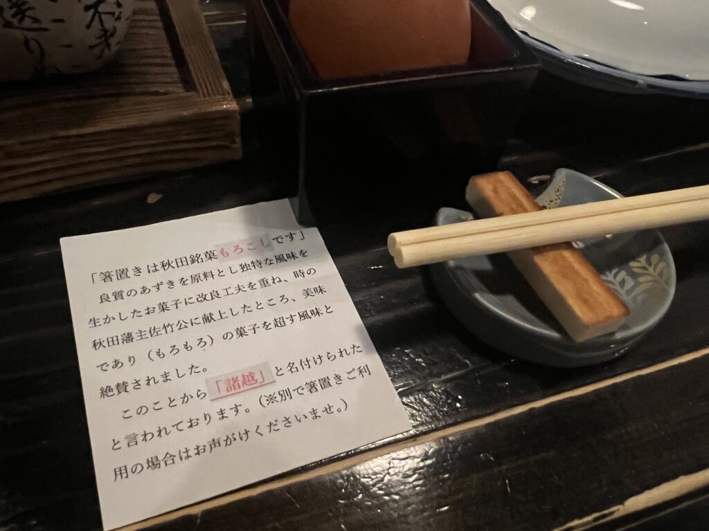 秋田銘菓もろこしを箸置きとして使っているそうです。