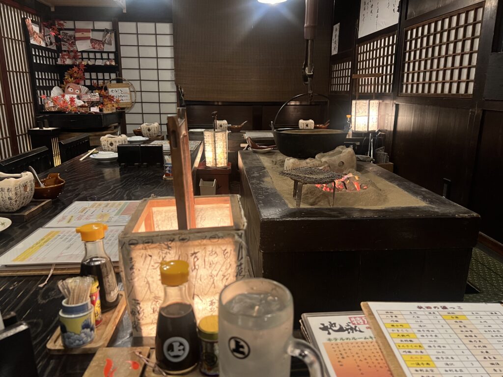 囲炉裏が目の前にあってテンション上がります。