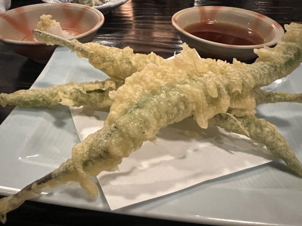 魔女の杖とは、青唐辛子のブランドとのことで、天ぷらで提供されます。
