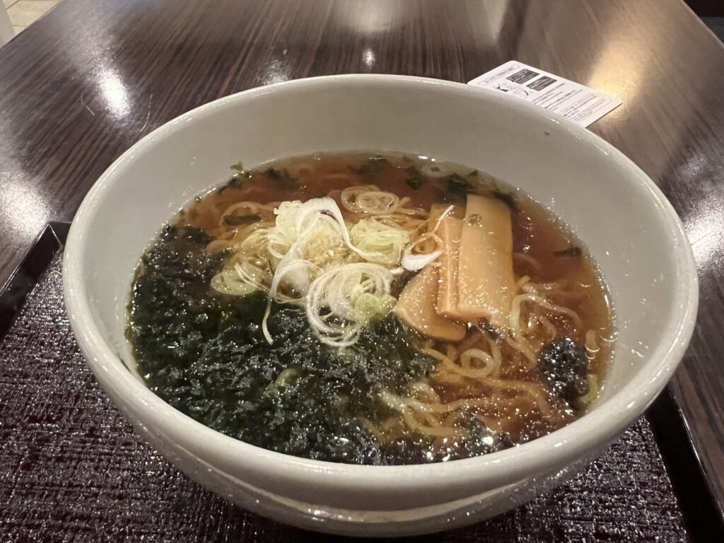 21:30~23:00限定で食堂にて提供されているハーフサイズの醤油ラーメンです。