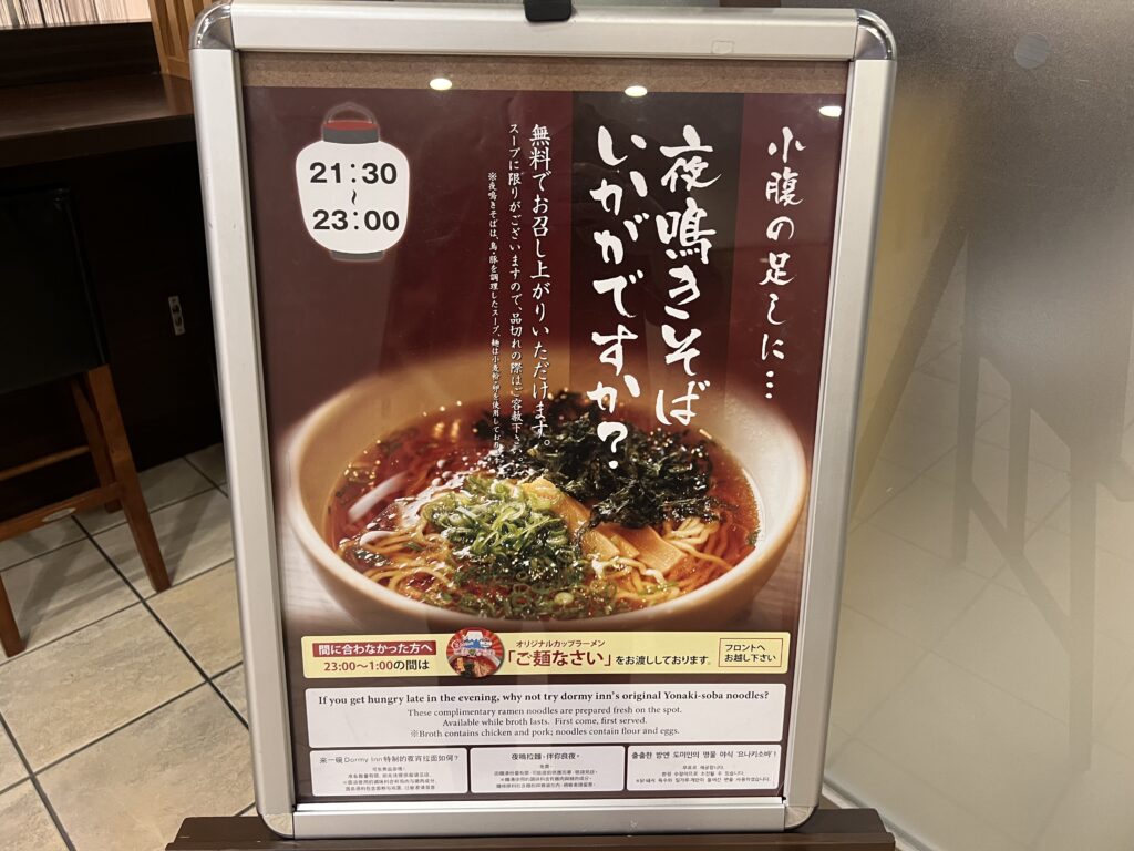 今やドーミーインの名物ともいえるのが、夜鳴きそばです。