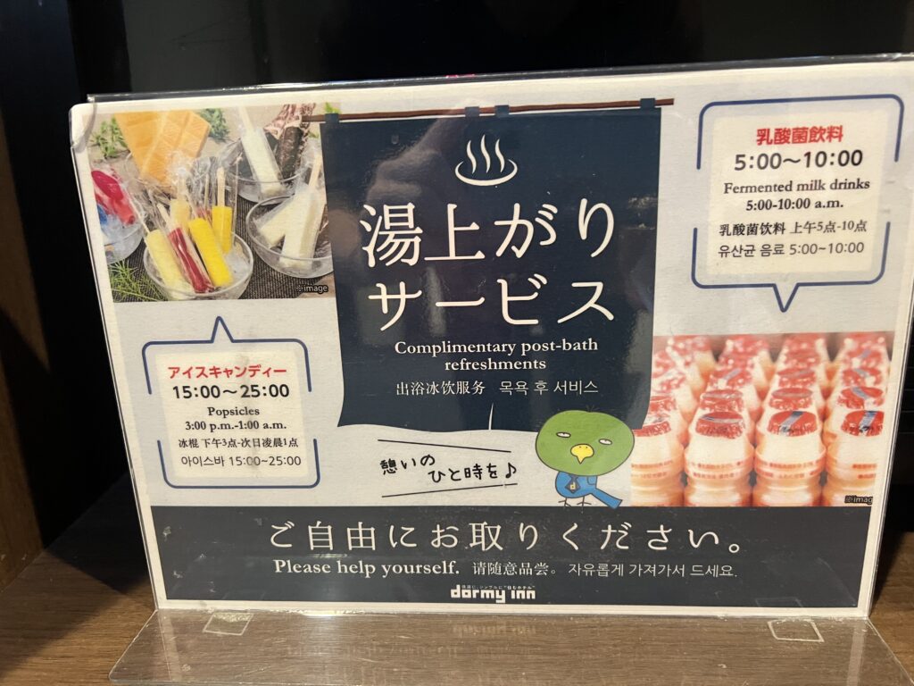 すっきりしたところで、ここでもドーミーインならではの湯上りサービスがあります。