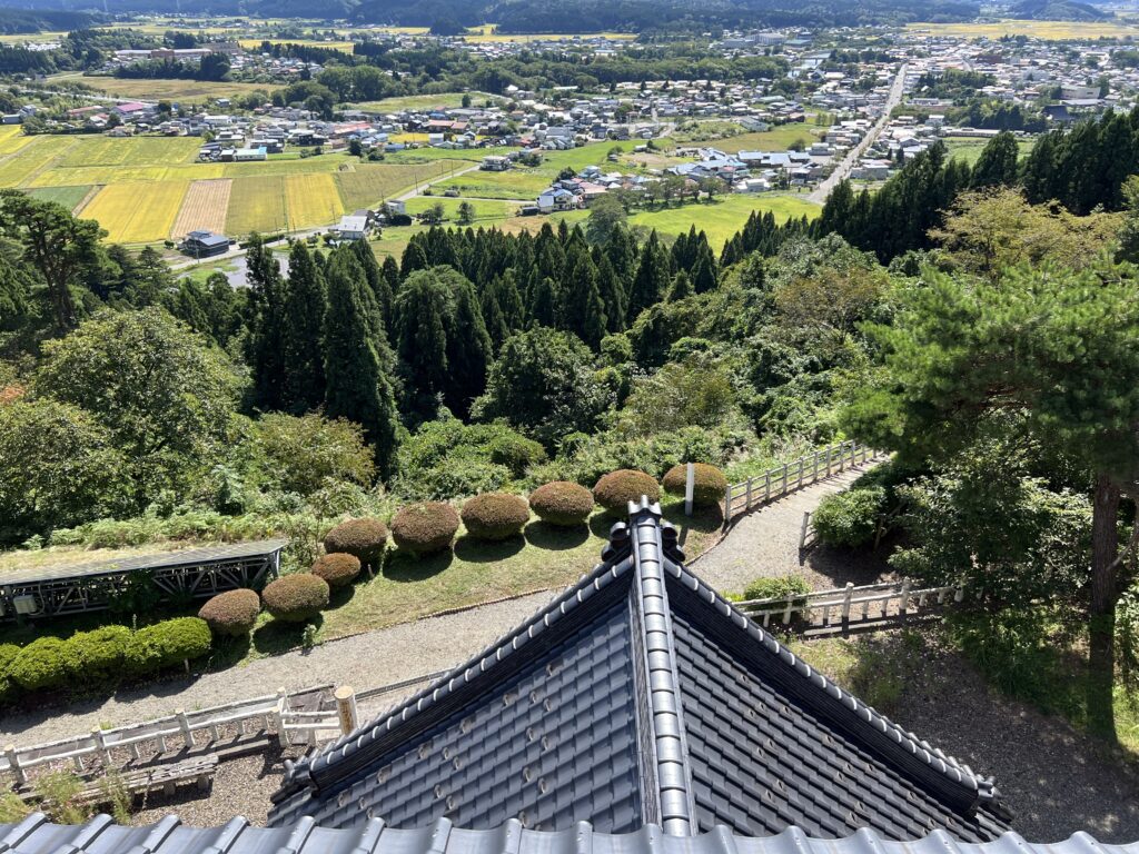 城の最上階は展望台になっており、五城目町が一望できます。