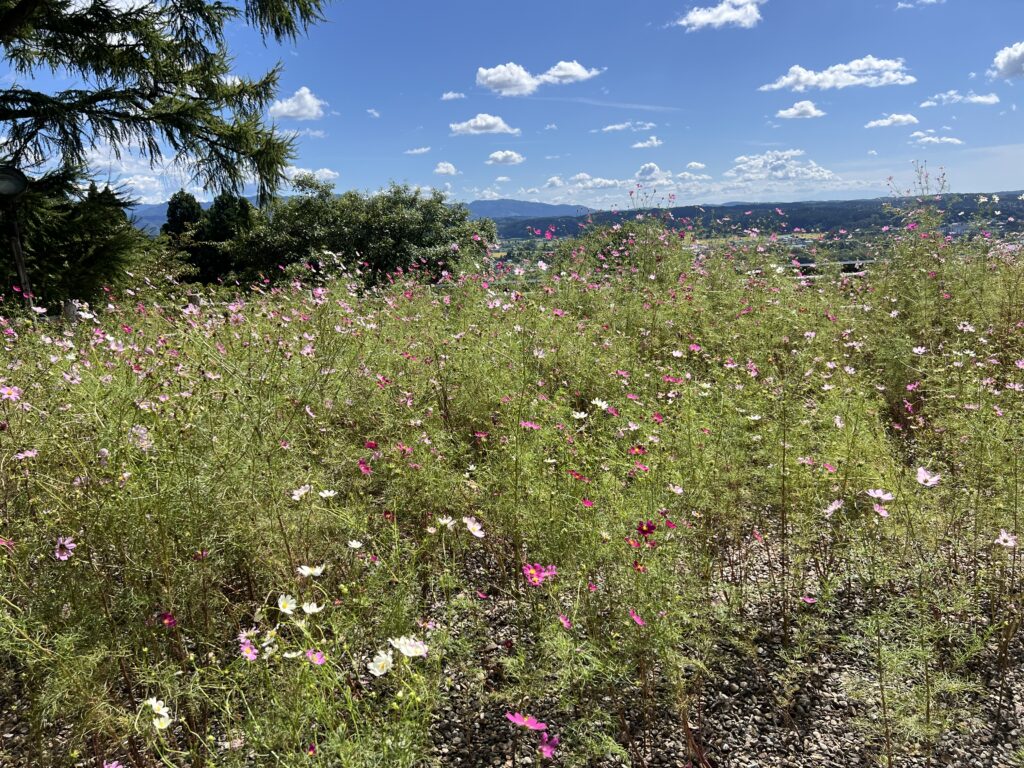 お城の脇にはコスモスが咲き誇っていました。
