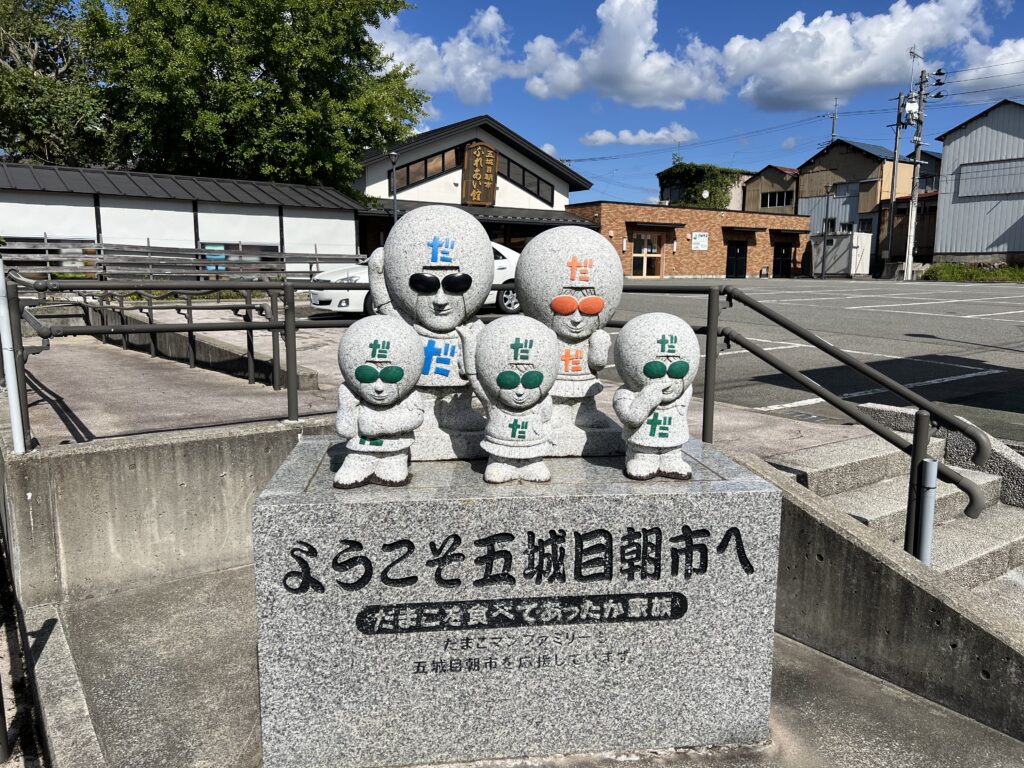 城内にある映像資料で、だまこマンというゆるキャラで出てきたのですが、五城目町のふれあい館前にそのキャラがいました(笑)