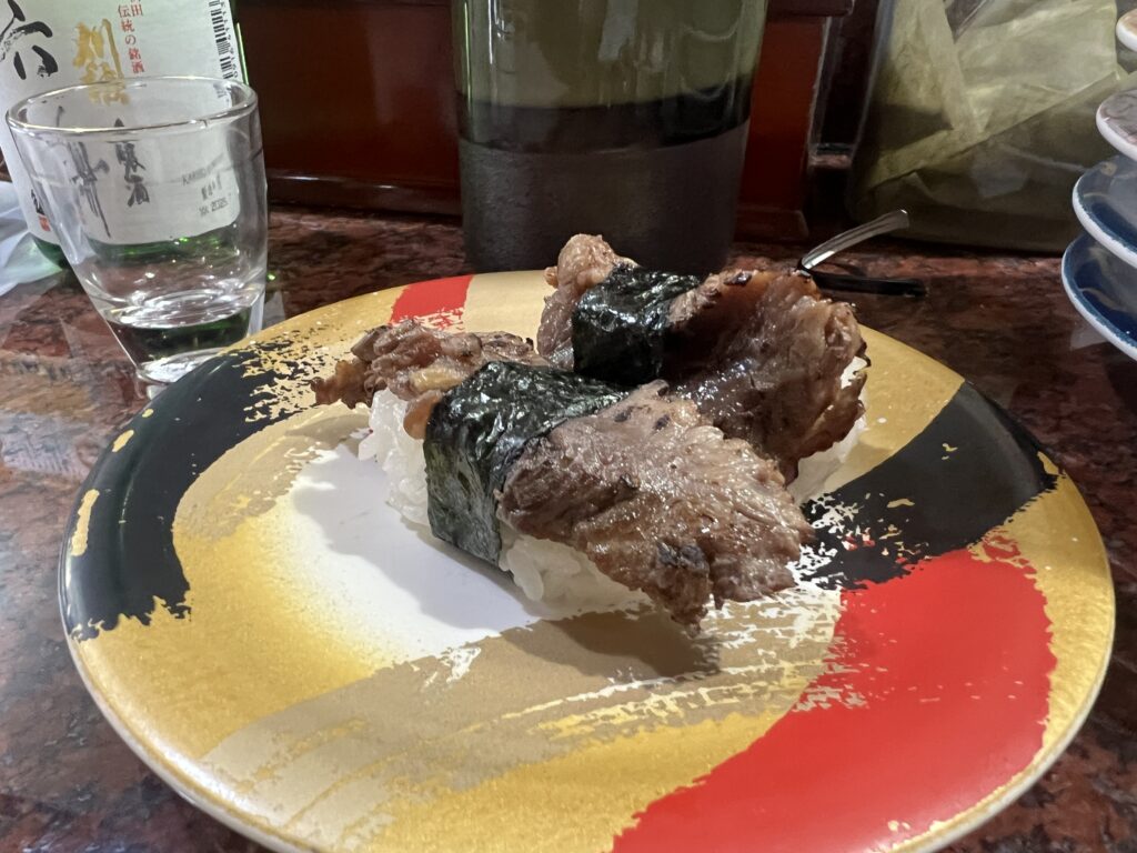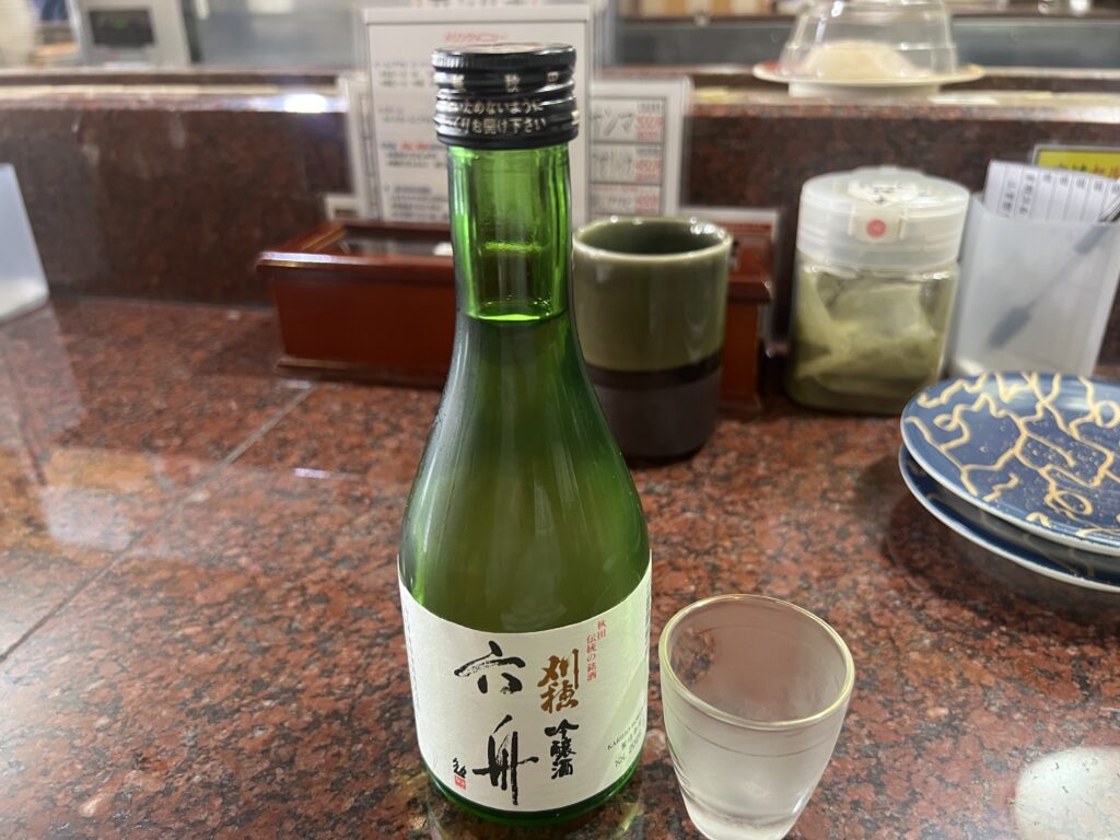 回転寿司屋で日本酒を頼むと、小瓶ごとドンっと来るのがいいですね。