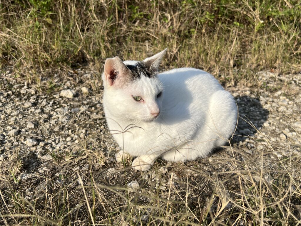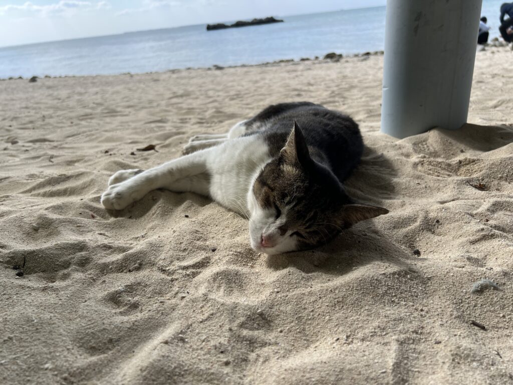 ビーチには猫が気持ちよさそうに横たわって寝ていました。