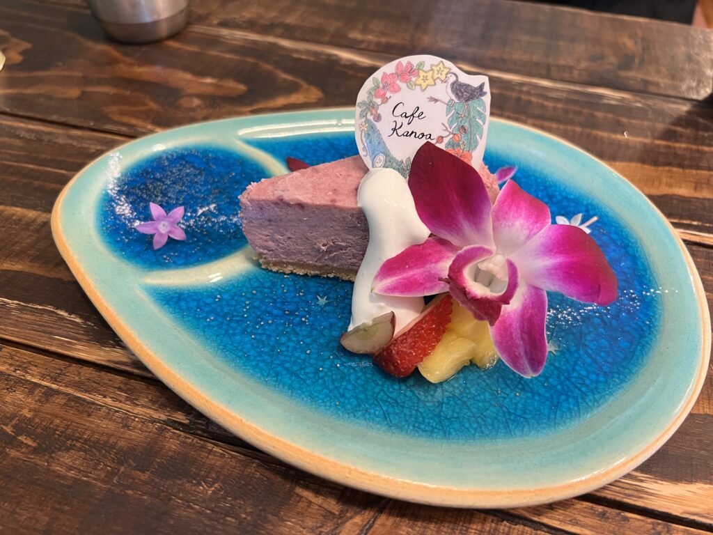 タコライスを8割ほど食べ進めたところで、チーズケーキが登場です。